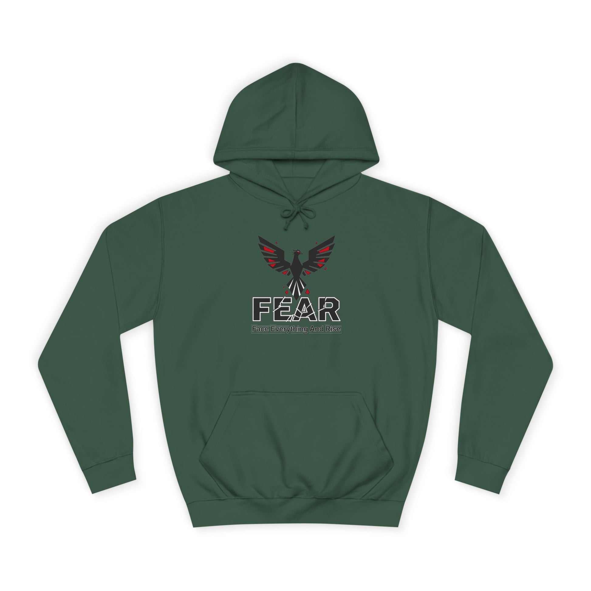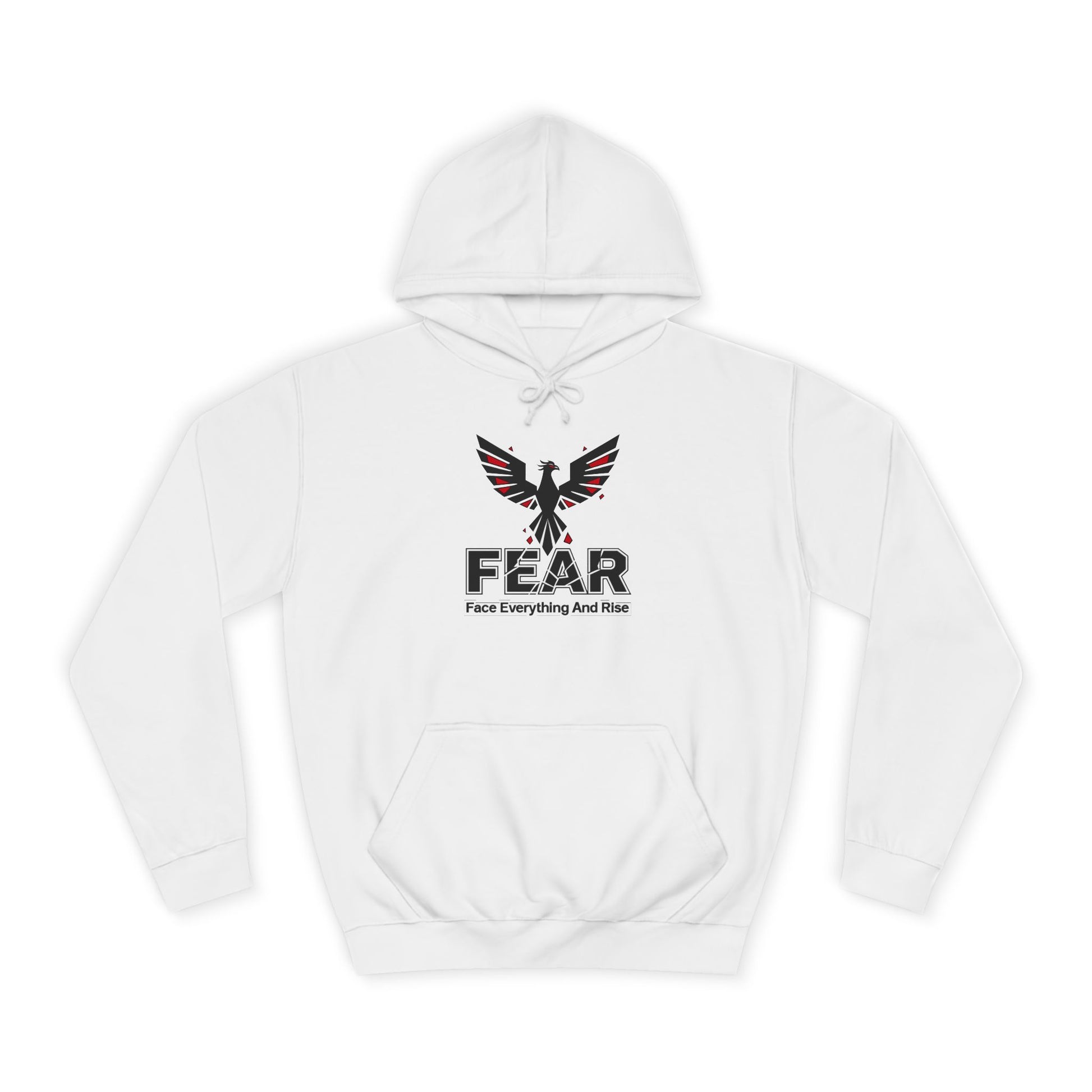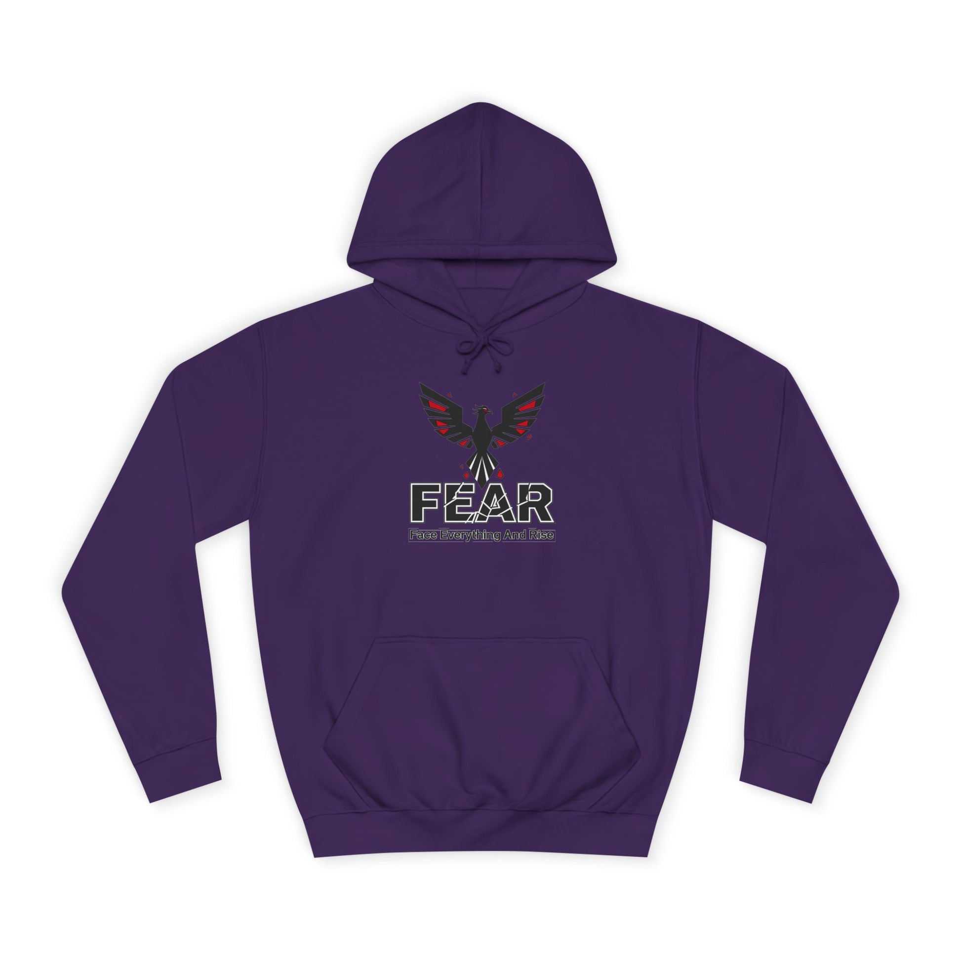 A cozy unisex college hoodie with a 'FEAR' design, perfect for those who value friendship and community. This hoodie gives off a warm and inviting vibe, ideal for casual hangouts and gatherings with loved ones. Relevant for holidays, birthdays, or just everyday wear.