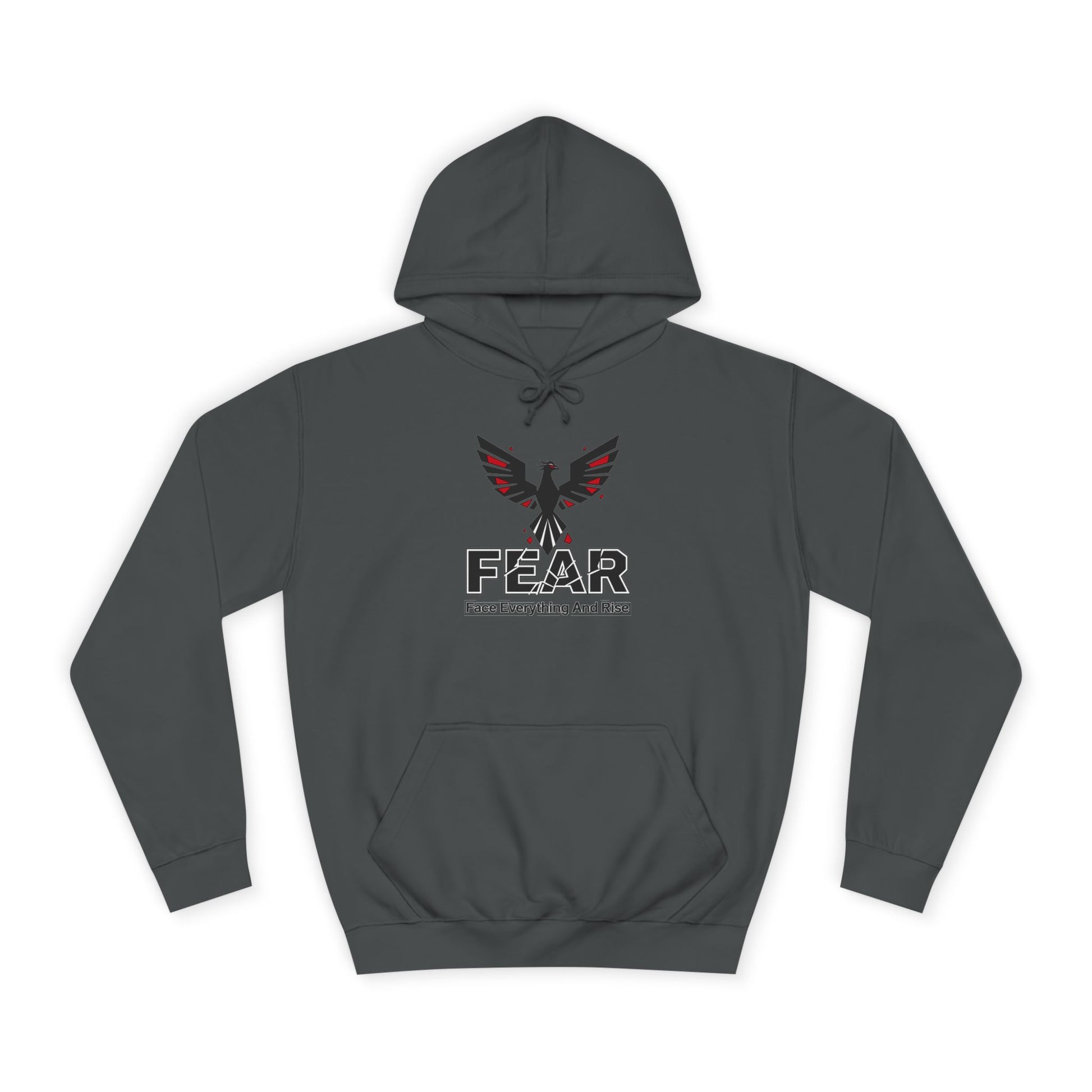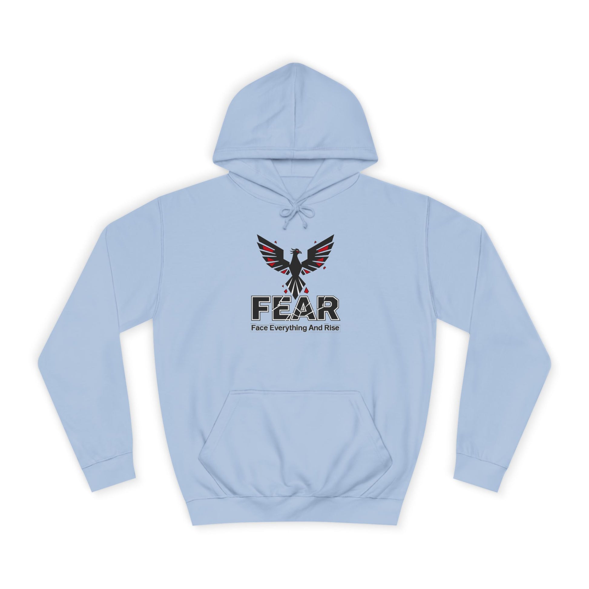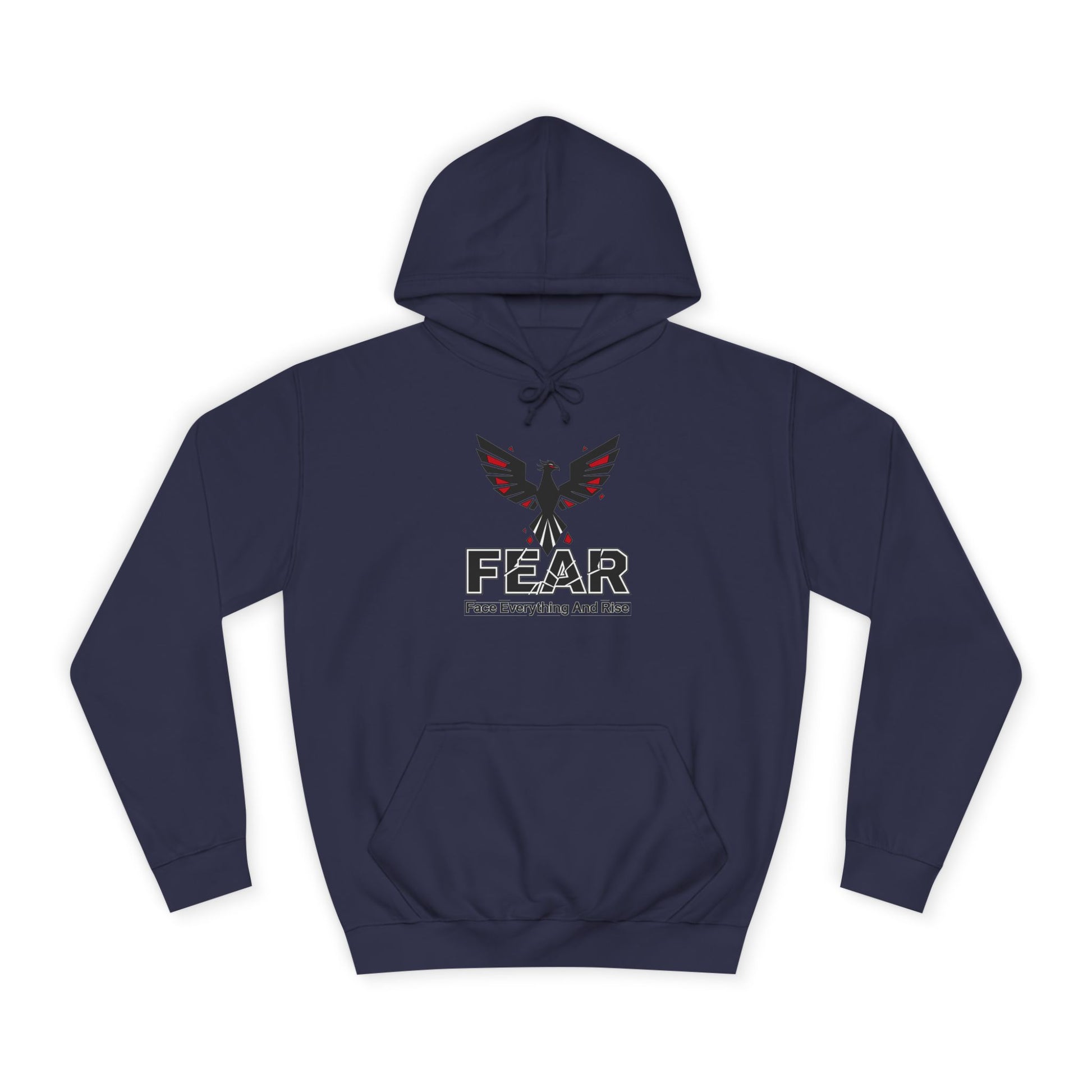 A cozy unisex college hoodie with a 'FEAR' design, perfect for those who value friendship and community. This hoodie gives off a warm and inviting vibe, ideal for casual hangouts and gatherings with loved ones. Relevant for holidays, birthdays, or just everyday wear.