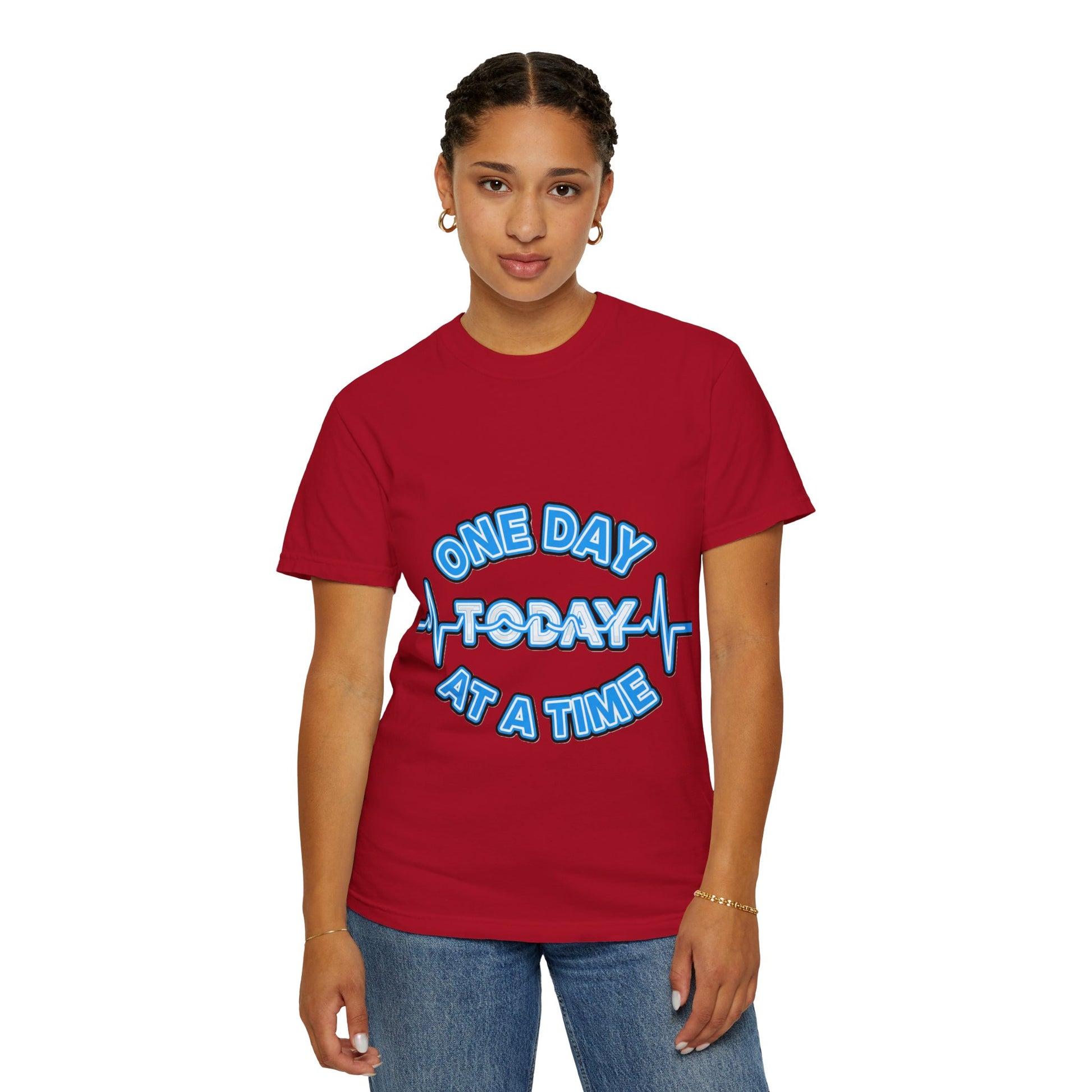 Recovery is lived in moments, not miles. This tee reminds you: breathe, focus on today, and take it all one day at a time. Stay present, stay strong. This unisex garment-dyed T-shirt features a simple and inspiring 'One Day At A Time' design. It gives off a friendly and positive vibe, making it perfect for those who value community and connection. Ideal for social gatherings, team events, and group activities.