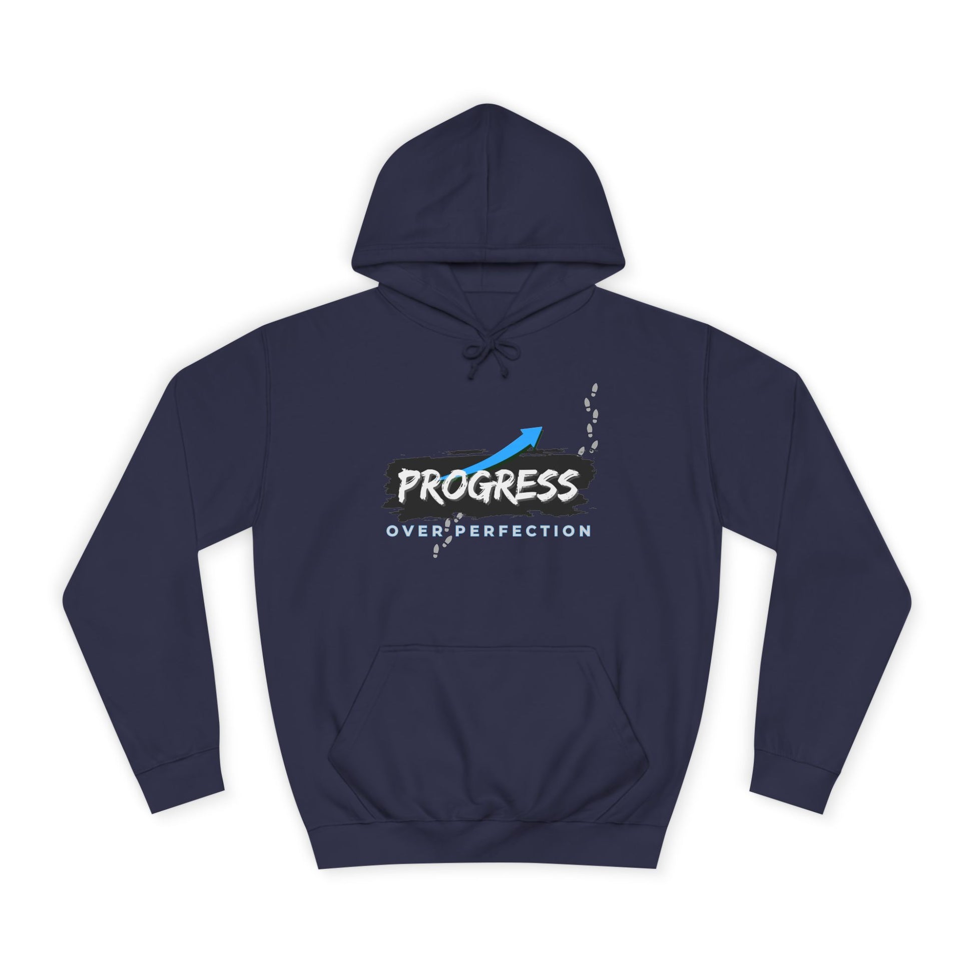 A cozy and comfortable unisex college hoodie featuring the mantra 'Progress Over Perfection' from the Rrecovery Collection. This hoodie exudes positivity and motivation, making it perfect for anyone on their journey to recovery. Great for everyday wear or as a reminder of staying focused on progress. Ideal for those celebrating recovery milestones or those supporting loved ones in recovery.