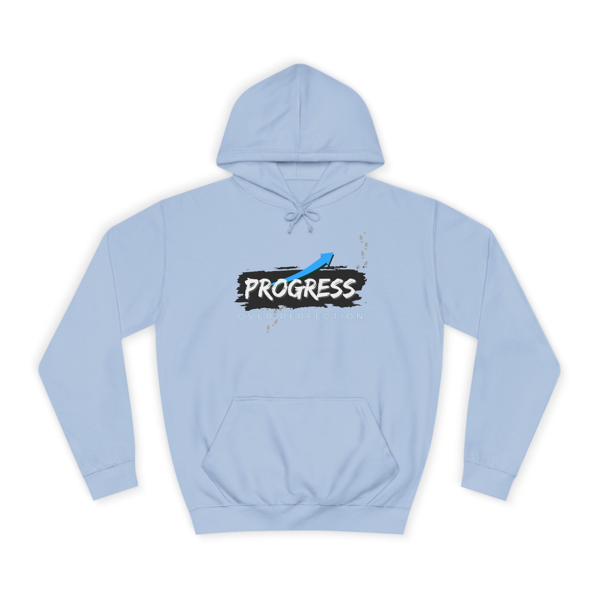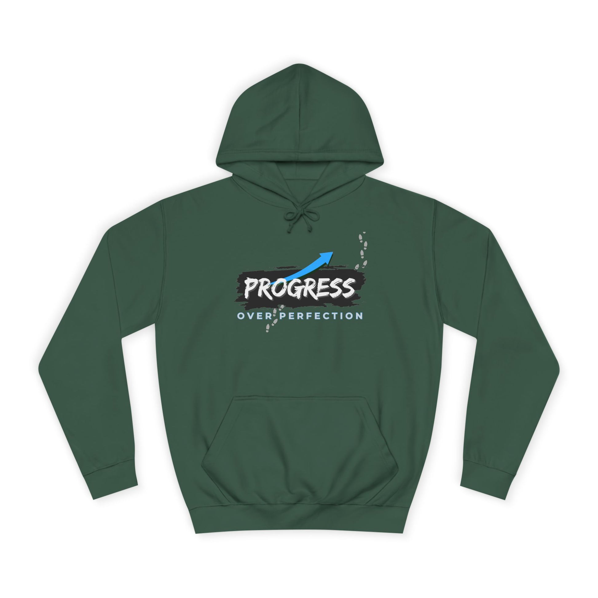 A cozy and comfortable unisex college hoodie featuring the mantra 'Progress Over Perfection (ODAT)' from the addiction recovery collection. This hoodie exudes positivity and motivation, making it perfect for anyone on their journey to recovery. Great for everyday wear or as a reminder of staying focused on progress. Ideal for those celebrating recovery milestones or those supporting loved ones in recovery.