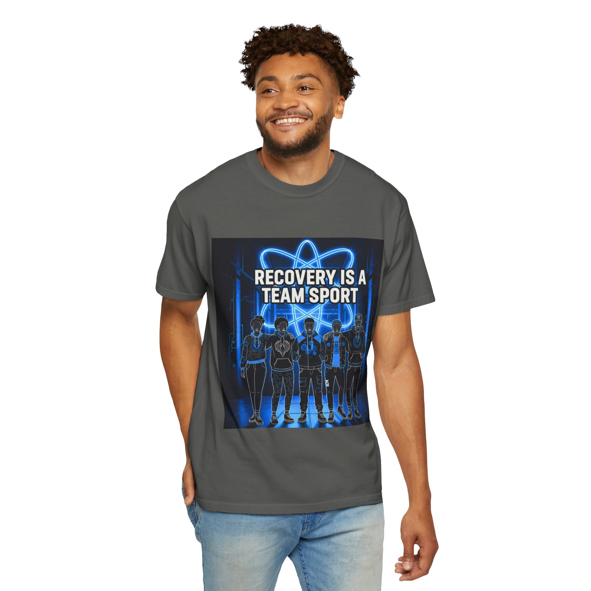 Lift each other up. This tee reminds us recovery isn’t solo—it’s teamwork, encouragement, and shared strength. Wear it to spark connection and celebrate every win. Comfy, bold, and perfect for team players on the road to recovery. This unisex garment-dyed T-shirt features a simple and inspiring 'Recovery is A Team Sport' design.
