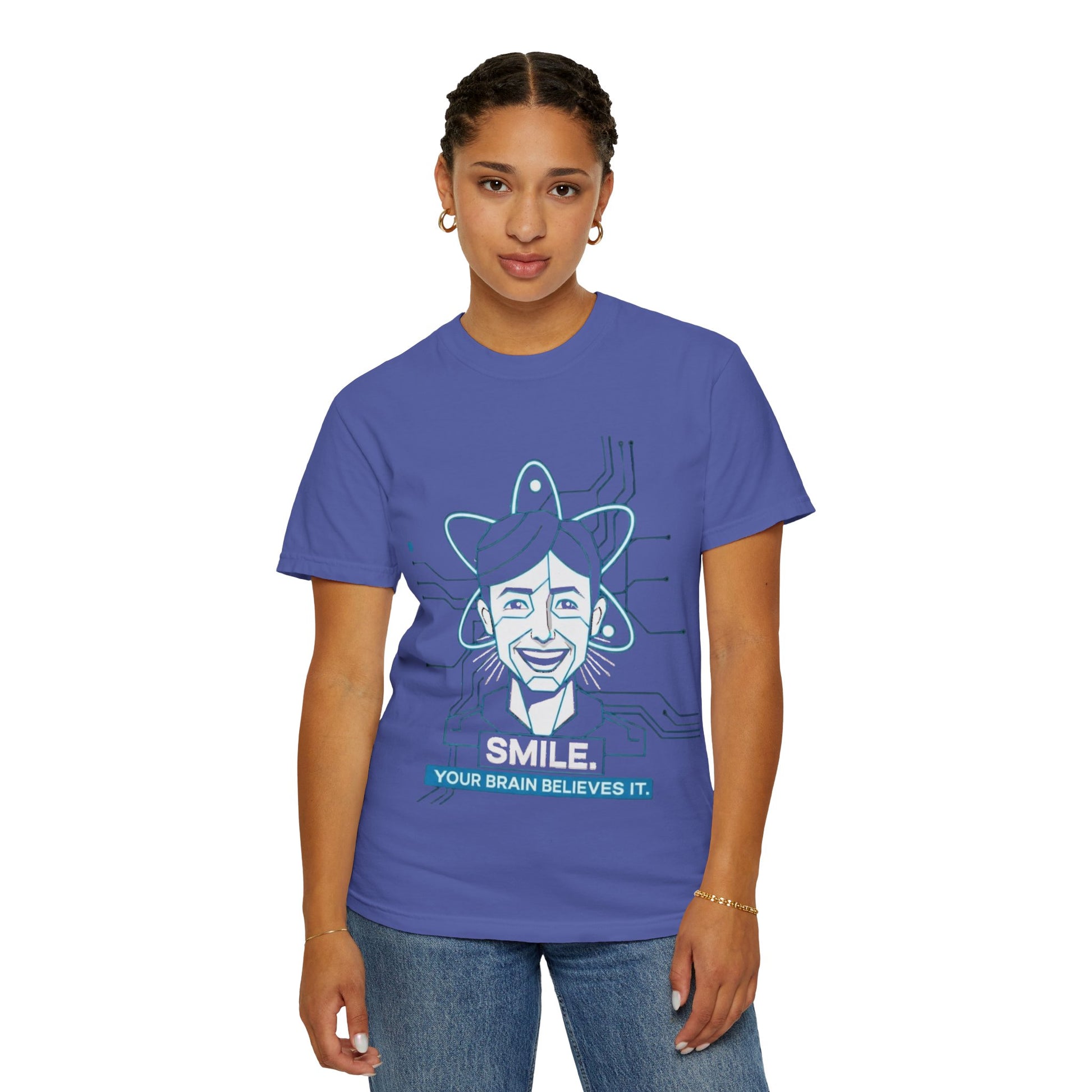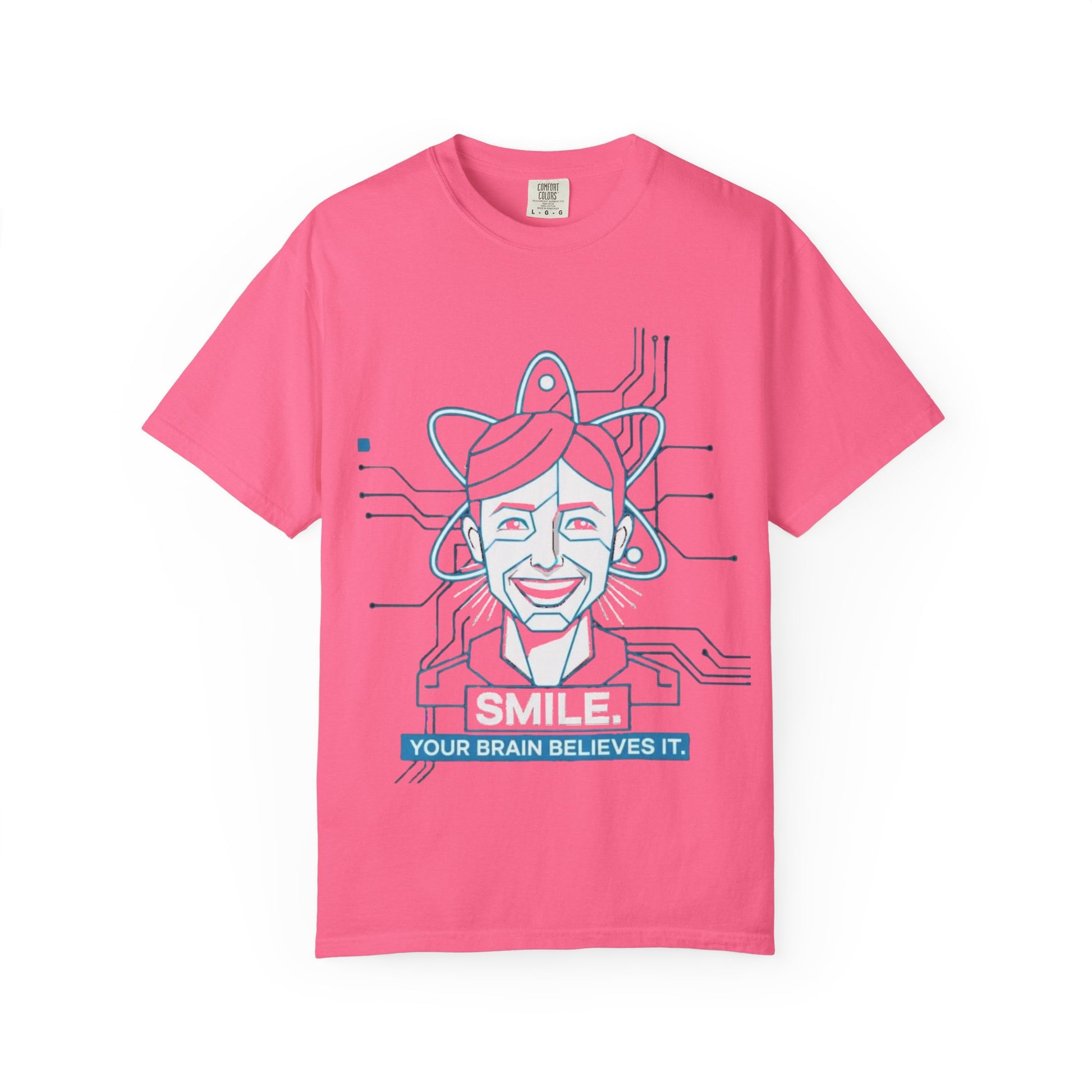 A little joy goes a long way. This tee is a reminder (and a nudge) to wear your smile proud. Science says your brain buys in—so lead with happiness. Bright, comfy, and perfect for sharing positive vibes. This T-shirt features a simple and inspiring 'Smile' design, giving off a friendly and positive vibe.